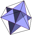 In the "select a sum" menu, the first three words of the Bible (913 + 203 + 86) have a gematria sum of 1202, the 10th points on the surface of a stella octangula, (12 × 10² +2) = 1202. The sum of the factors of 2701 (37 × 73) is 110, the 3rd points on the surface of a stella octangula (12 × 3² +2) = 110. Also note that 913 203 + 86 401 + 395 407 + 296 = 679, the 7th stella octangula n(2n² 1). The stella octangula is a three-dimensional version of a two-dimensional hexagram. If rotated just right in a shadow, it becomes a perfect Star of David. Two tetrahedrons fused into each other and offset 180 degrees, it is the only polyhedron that is perfectly inscribed in a cube. Here is an example of a stella octangula inscribed in a cube: